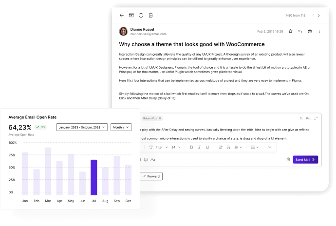 Simplify your workflow with seamless email integration. Send, track, schedule follow-ups and insightful interactions for business expansion.